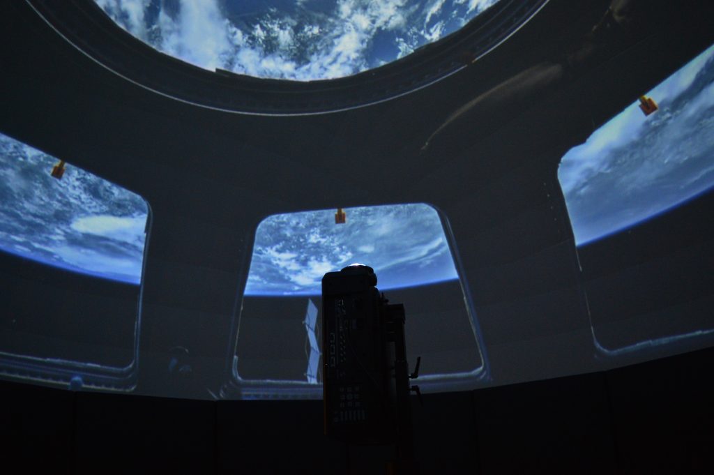 Ein Blick aus der Internationalen Raumstation (ISS) auf die Erde – das Planatrium macht es möglich